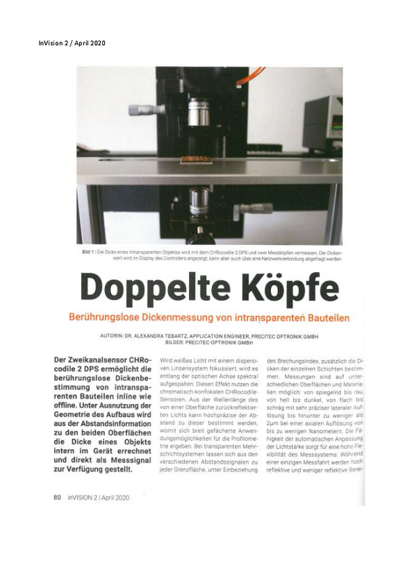 Berührungslose Dickenmessung von intransparenten Bauteilen InVision 2/April2020