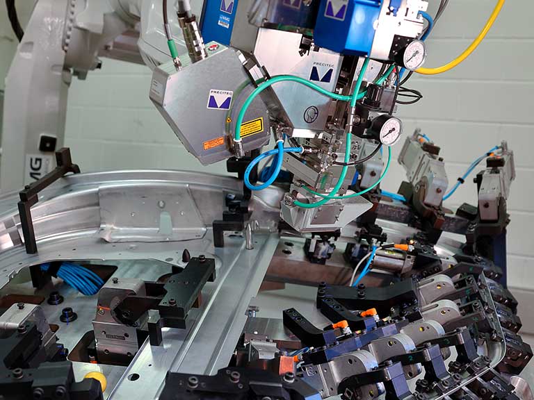 在车身生产中,周期时间、工艺可靠性和自动化能力是最重要的因素。同时,还必须可靠地掌握复杂的几何形状和大量生产。